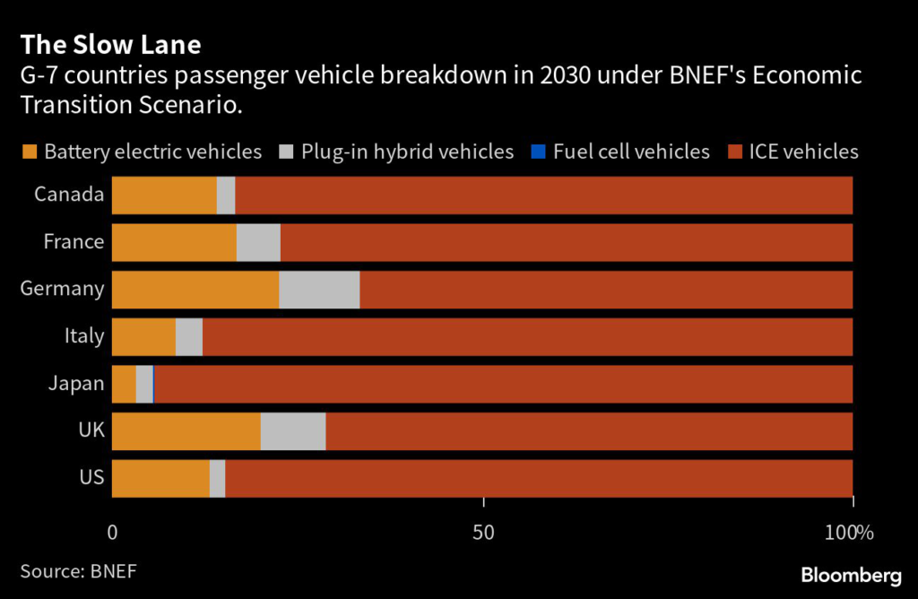 Meanwhile, Japan’s EV adoption is forecast by BNEF to be the lowest among G-7 countries by the end of the decade.