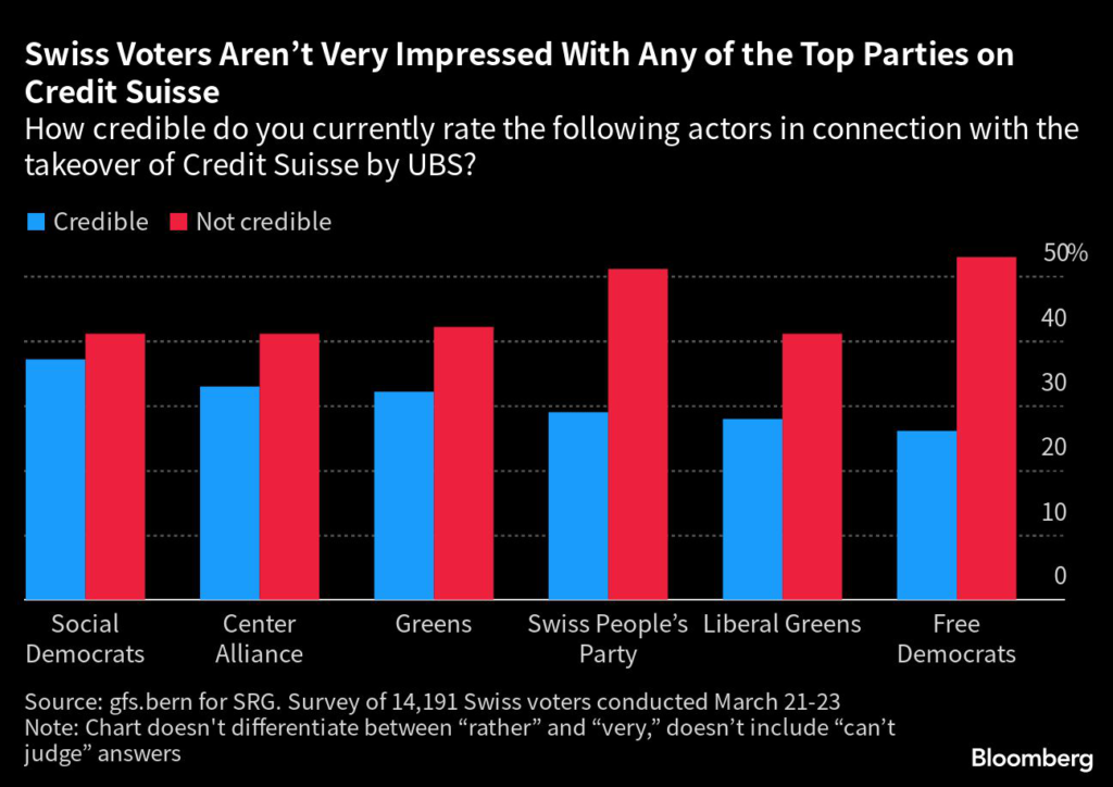 Over half of the Swiss population disapproves of the deal and all major parties have a credibility deficit, according to a snap poll after the takeover.