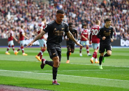 The leaders were 2-0 up and cruising towards restoring their six-point cushion over Manchester City with Gabriel Jesus tapping home in the seventh minute and Martin Odegaard doubling Arsenal’s lead with a volley three minutes later.