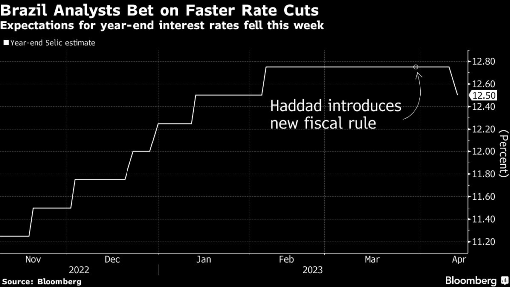(Bloomberg) — Brazil analysts lowered their 2023 interest rate forecasts for the first time in a year and a half as President Luiz Inacio Lula da Silva puts the finishing touches on a proposal aimed to control the growth of public debt.