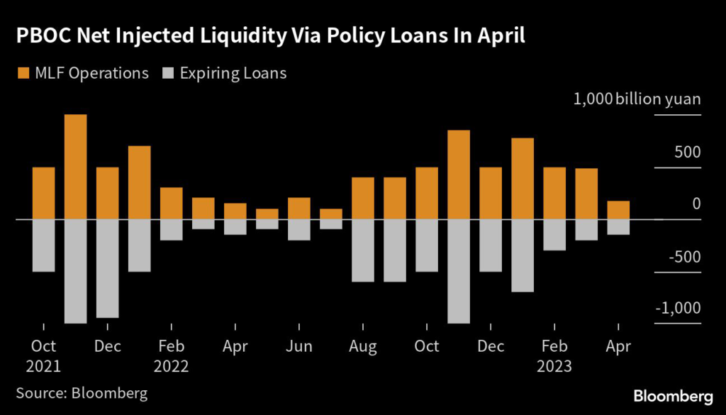 (Bloomberg) — China injected the least amount of medium-term cash into the banking system since November, a sign that policymakers are watching the effects of past easing steps as the nation’s economic recovery appears to be on track.