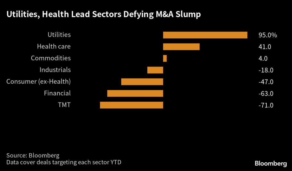 Transaction values are still down 47% this year at $687 billion, according to data compiled by Bloomberg.