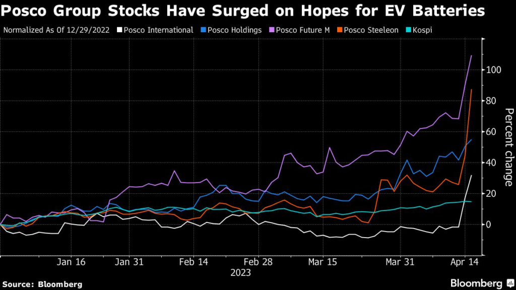 (Bloomberg) — Frenzied retail buying of stocks tied to electric-vehicle batteries has added more than $11 billion in market value to Korean steelmaker Posco Holdings Inc.