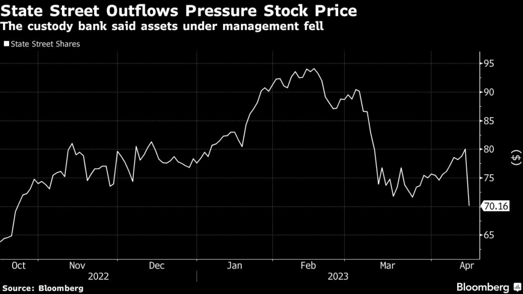 State Street Corp. shares plunged the most in three years after the custody bank reported that clients retreated from its investment products, and that the outflows probably aren’t over.