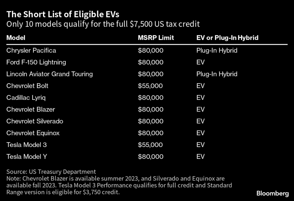 The result of that hardline: Only 10 electric and plug-in hybrid vehicles will be eligible for the full tax credit for now, and seven will qualify for $3,750.