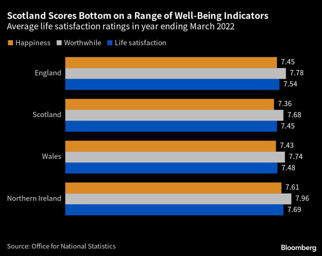 On life expectancy, Scots live years less than other people in the UK. And on happiness and life satisfaction, Scotland also lags the other nations. Ipsos polling shows voters are dissatisfied with the SNP’s running of the National Health Service and the economy.