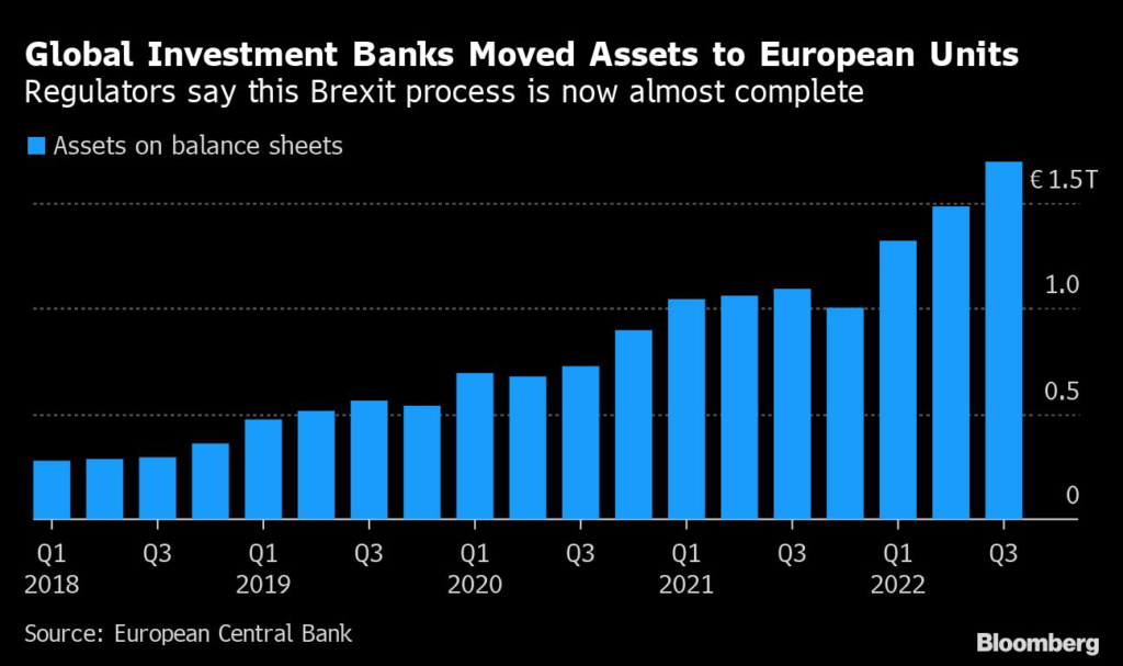 Since early 2018, nine of the biggest international banks have increased the assets booked at their eurozone entities more than sixfold to almost €1.7 trillion, according to data from the European Central Bank.