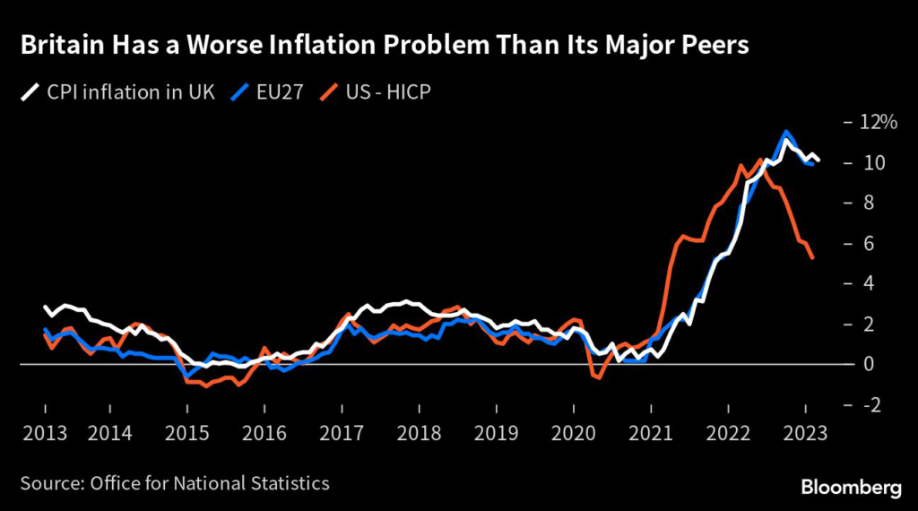 While inflationary pressures are subsiding across most of Europe and the US, the UK on Wednesday posted a 10.1% increase in its headline Consumer Prices Index.