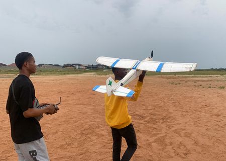 LAGOS (Reuters) – Bolaji Fatai has never set foot in an airplane, but that hasn’t stopped him from building his own remote-controlled model aircraft from trash and sending it soaring over the sprawl and chaos of Lagos, Nigeria’s commercial capital.