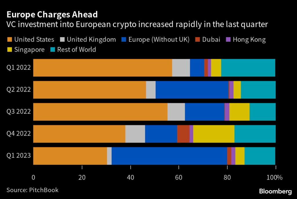 Europe has been taking market share in crypto venture capital investment from the US, data from PitchBook show.