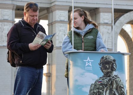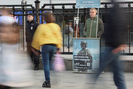 MOSCOW (Reuters) – The Russian military has launched a video campaign to lure more professional soldiers to fight in Ukraine which challenges those interested to show they are “a real man” and swap what it casts as hum-drum civilian life for the battlefield.