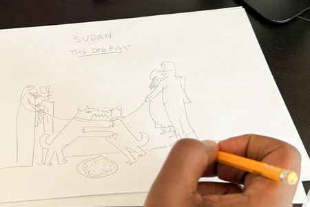 His latest, entitled The Dog Fight, depicts the two main Sudanese foes, army chief General Abdel Fattah al-Burhan and paramilitary leader General Mohamed Hamdan Dagalo, as dogs fighting over a piece of meat in the shape of Sudan.