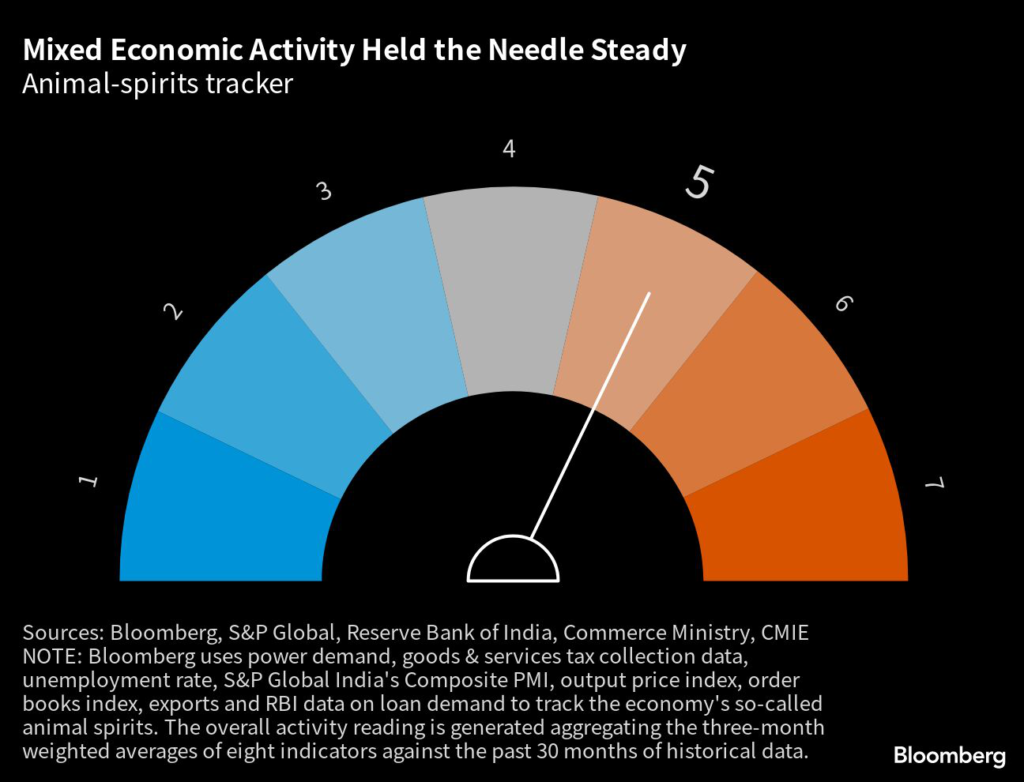 While the needle on a dial measuring the so-called Animal Spirits was unchanged at 5 for a third straight month, a jump in collections from taxes levied on consumption showed Asia’s third largest economy was ticking along.