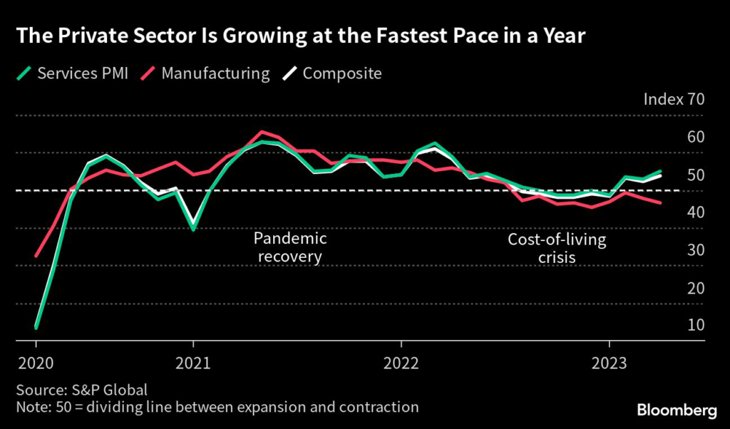 Figures on Friday then showed that consumer confidence and the composite purchasing managers’ index both jumped to one-year highs in April.
