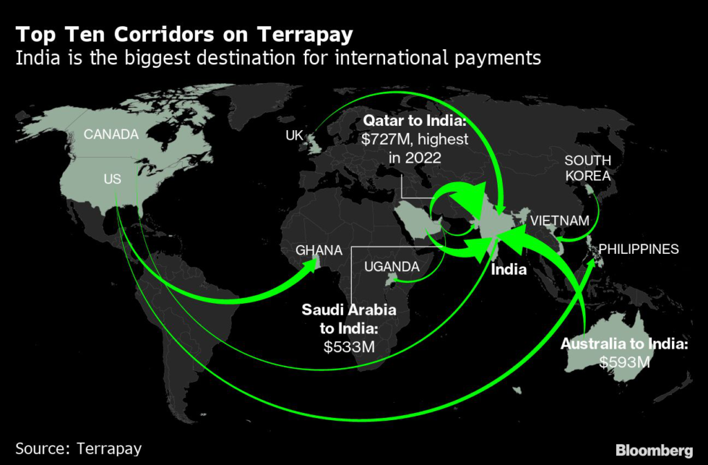 The company’s numbers suggest India is the biggest recipient of money from overseas.