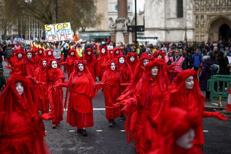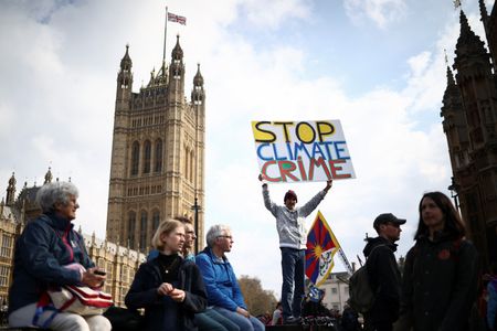 (Reuters) -Climate change campaigners gathered outside Britain’s parliament building ahead of Earth Day to urge action on global warming, while volunteers worldwide geared up to plant trees and clear trash to mark the 54th annual celebration of the environment.