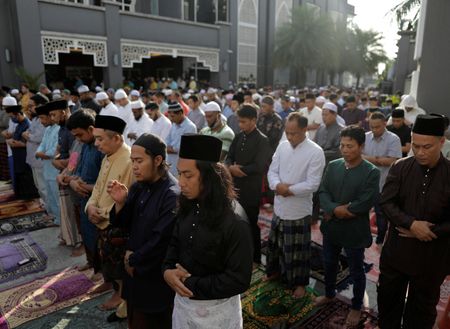 JAKARTA (Reuters) – Muslims in Indonesia and Malaysia gathered in large groups to usher in the Eid al-Fitr festival on Saturday, relieved to be able to celebrate freely after the lifting of most COVID-19 restrictions.