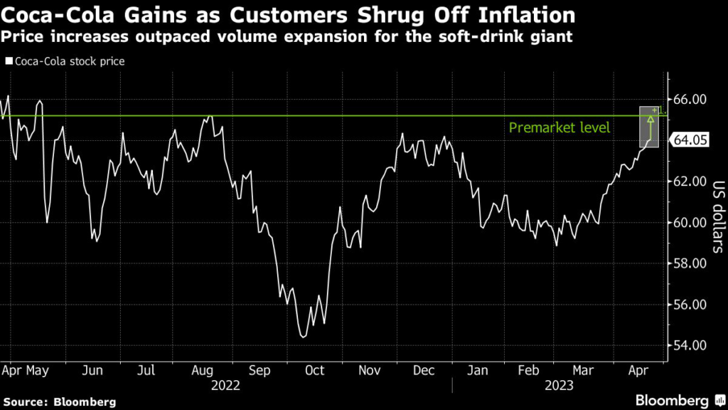 Coca-Cola Co. reported first-quarter organic revenue growth that surpassed estimates as consumers absorbed higher costs for the company’s sodas, juices and energy drinks.