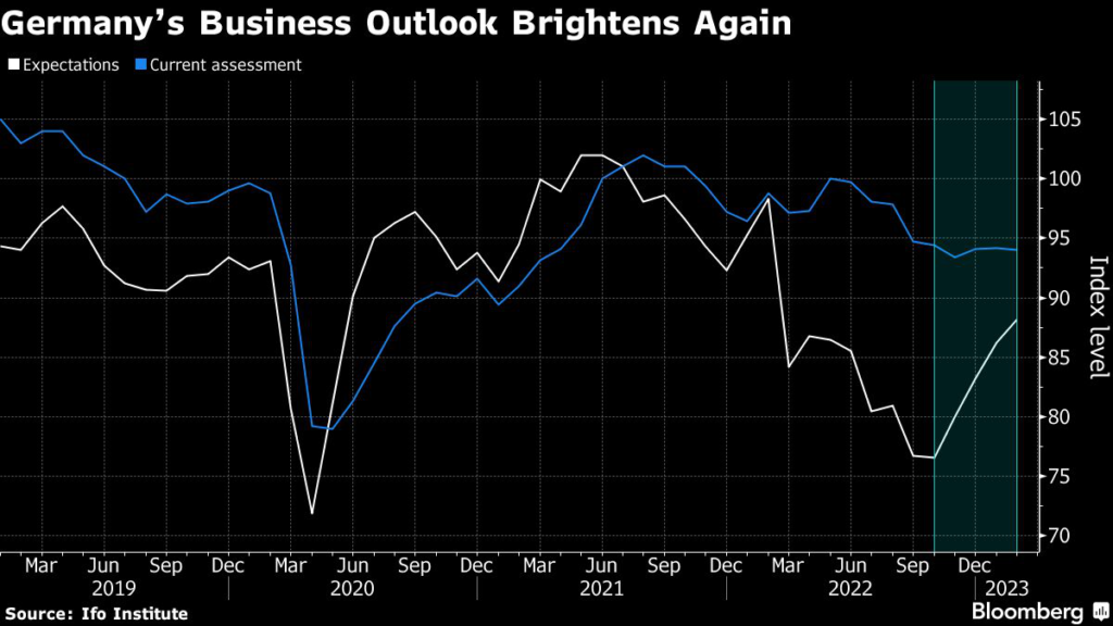 (Bloomberg) — Germany’s business outlook unexpectedly improved for a sixth month as the economy gradually recovers from the energy shock.