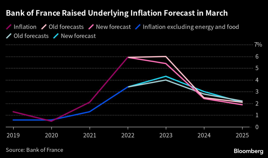 Villeroy said in his letter that monetary policy should play the primary role in defeating the strongest inflation of the euro era — particularly as it’s more effective at tackling underlying price pressures that risk being more persistent.
