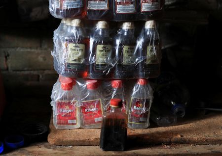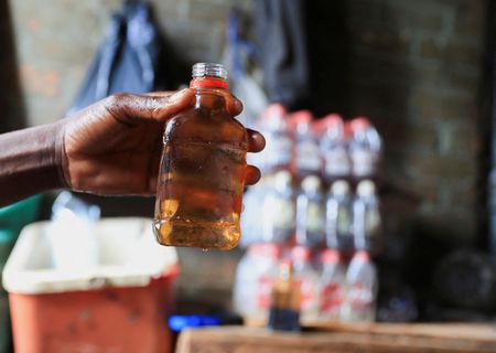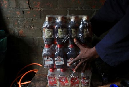 HARARE (Reuters) – Inside a grimy, poorly lit room in Mbare, one of Zimbabwe’s most populous townships, a 45-year-old man sits on a makeshift stool as he pours a brownish liquid into small bottles.