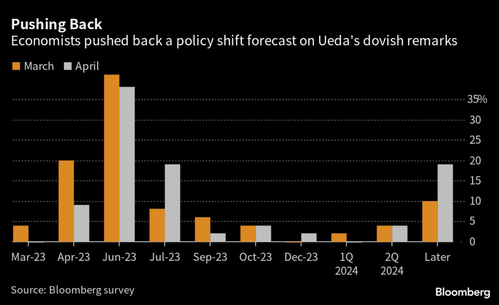 Surveyed economists see the June meeting as the most likely timing for a change in ultra-easy policy.