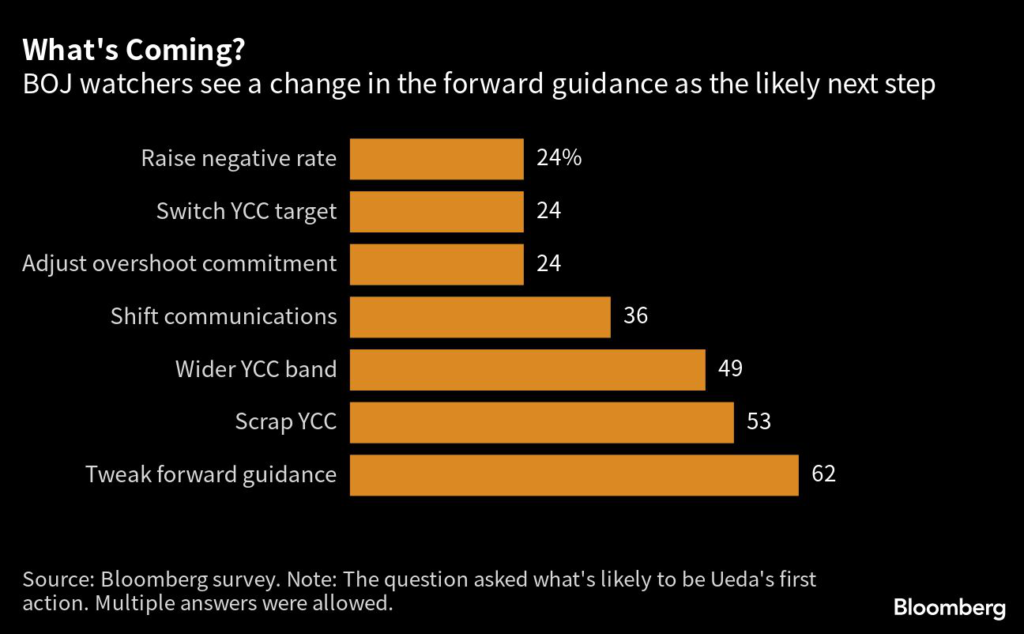 Still, with the memory of surprises from Ueda’s predecessor Haruhiko Kuroda etched on their minds, traders remain on high alert for any shocks emerging from Ueda’s debut meeting.