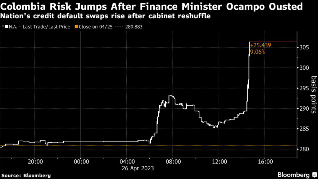 Colombia’s President Gustavo Petro ousted his market-friendly Finance Minister Jose Antonio Ocampo and replaced him with a close ally, sending bonds tumbling and the cost of insuring Colombia’s debt against default soaring.