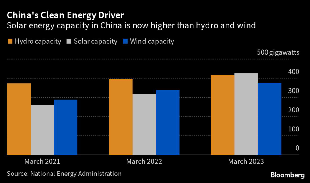 Solar topped hydro at the end of last month to become the country’s largest source of renewable power capacity.