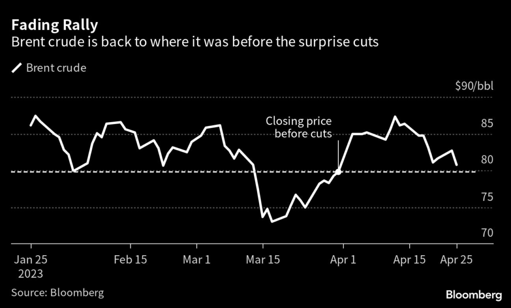 But with Brent crude sinking below $80 a barrel Wednesday — wiping out the price gains since the announcement — the group’s contention that the cuts were needed to prevent an oversupply is gaining justification.