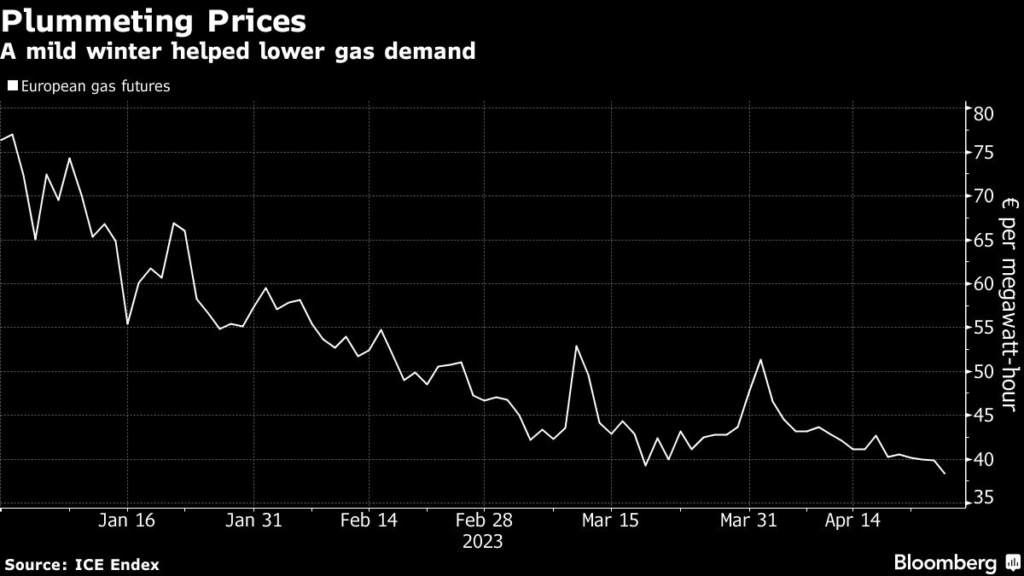 Uniper incurred one of the biggest losses in German corporate history as it scrambled to replace flows in a market that was roiled by record prices. However, a mild winter has allowed more gas to remain in storage and led to a steep drop in costs.