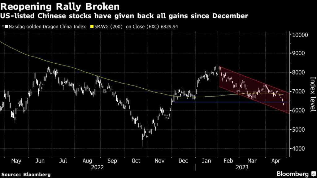 (Bloomberg) — US-listed Chinese stocks have lost over $100 billion in market value in April as concerns over geopolitical tensions eclipse optimism about the Asian giant’s economy.