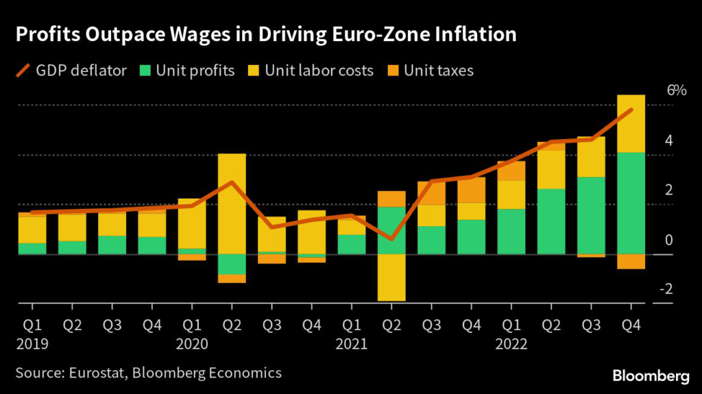 So-called greedflation is threatening to complicate efforts to rein in consumer-price growth, meaning the ECB may have to do more to hit its 2% target — just as officials flag that the end of their most aggressive cycle of interest-rate hikes is approaching.