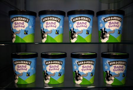 LONDON (Reuters) – Despite some signs inflationary pressures are easing, Unilever warned on Thursday of big increases in the prices of dairy, soybean oil, cocoa and sugar in the first half of this year – potentially bad news for fans of its Ben & Jerry’s Half Baked ice cream.