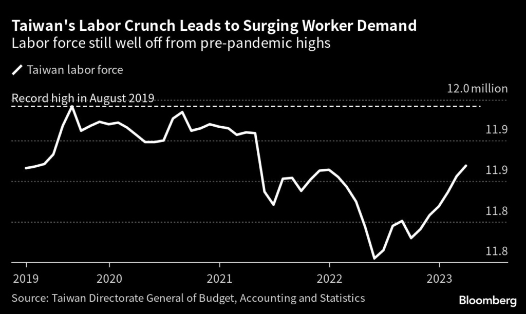 (Bloomberg) — Taiwan’s services sector is finding it hard to hire enough staff to contend with a post-pandemic pickup in tourism and spending, further pressuring an economy that is already struggling to return to growth.