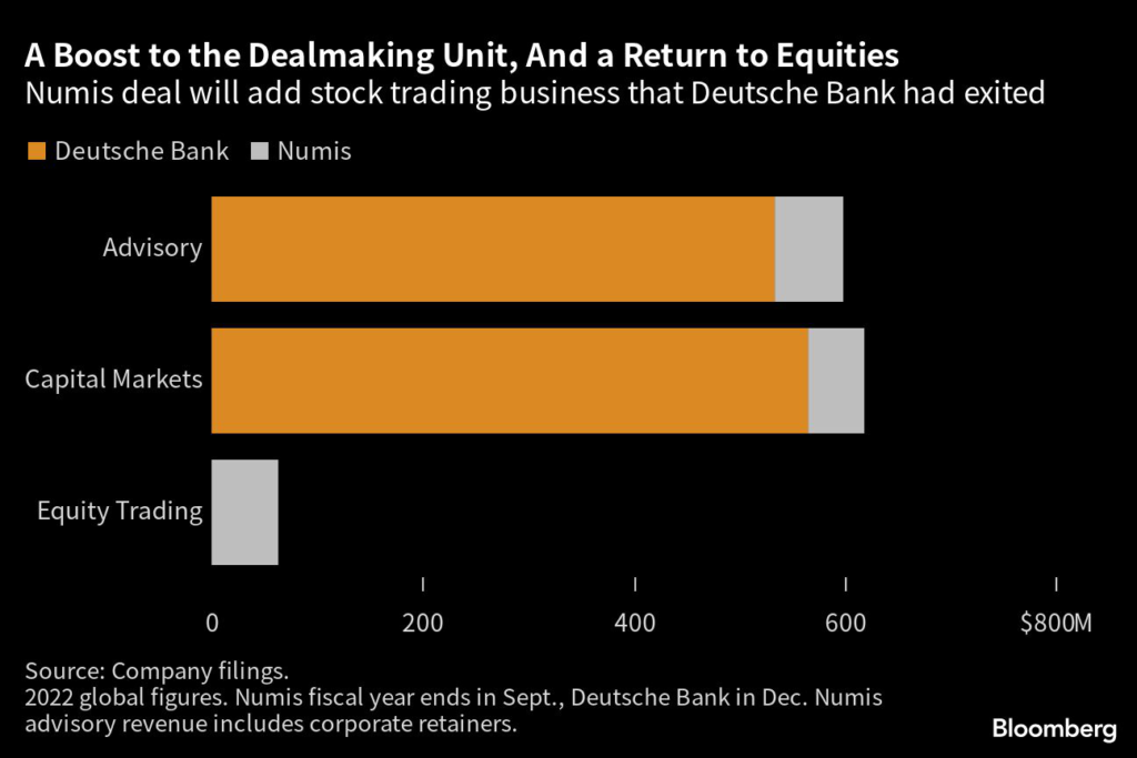 Chief Financial Officer James von Moltke told analysts Friday it shouldn’t be seen as a return to equities trading. Numis only does “agency brokerage” for corporations, complementing a business that Deutsche Bank still has.
