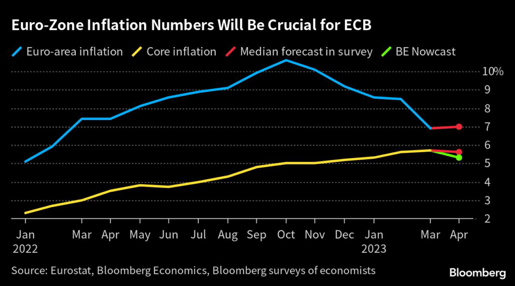 (Bloomberg) — The slowdown in euro-zone inflation probably reversed course this month while an underlying measure may have weakened, presenting the European Central Bank with conflicting signs just before its key decision.