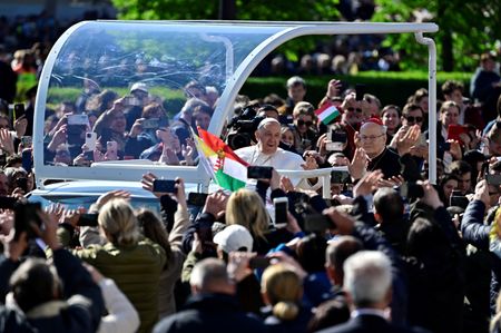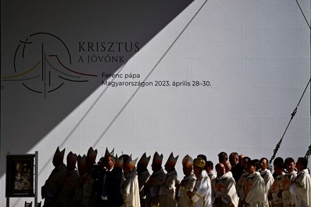 BUDAPEST (Reuters) -Pope Francis on Sunday presided over a big outdoor Mass where he urged Hungarians not to close the door on migrants and those who are “foreign or unlike us,” in contrast to the anti-immigrant policies of nationalist Prime Minister Viktor Orban.