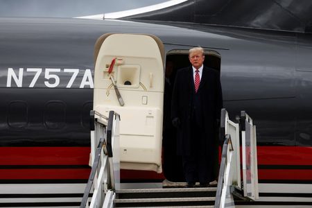 ABERDEEN, Scotland (Reuters) – Former U.S. President Donald Trump arrived at Aberdeen airport on Monday for a short trip to visit his golf courses in Scotland and Ireland.