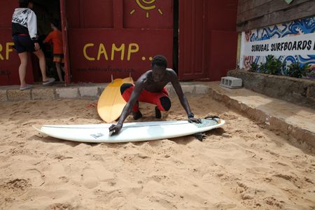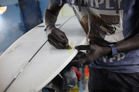 The surf scene is dominated by locals, many of whom surf on old boards donated or passed down from older surfers. But Diouf, who is also a surfing instructor, aims to change that by increasing the availability of locally made boards.