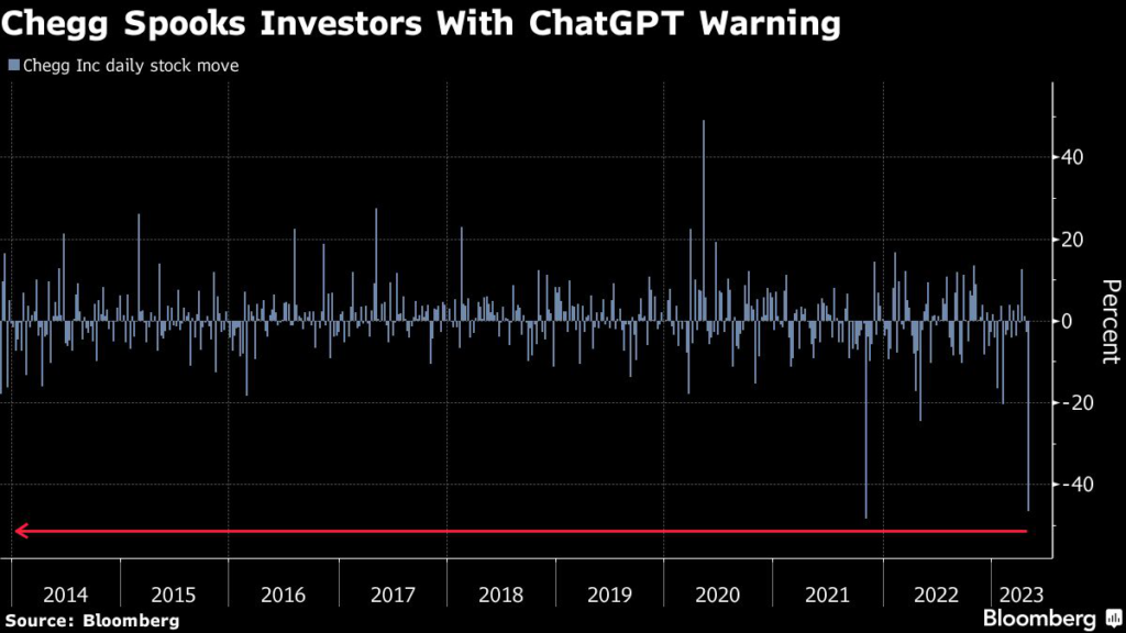 plunged Tuesday after it warned that the quick rise to popularity of OpenAI’s ChatGPT tool is causing fewer students to sign up for its services. And that’s having ripple effects, driving shares of UK education publisher Pearson Plc down the most in more than a year.