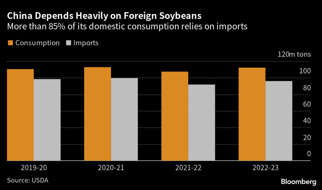 Today China relies on imports for over 80% of its soybean consumption, with those purchases concentrated in a few key countries led by Brazil and the US.