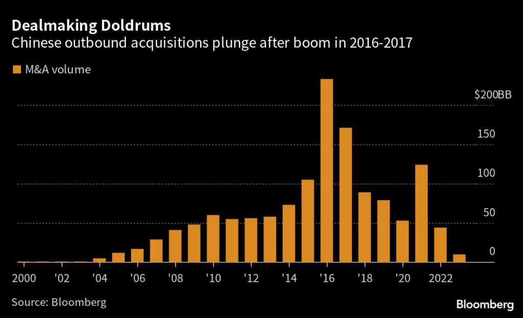 The wave of dealmaking has since tailed off after a number of transactions soured and Beijing told some top companies to focus on domestic operations.