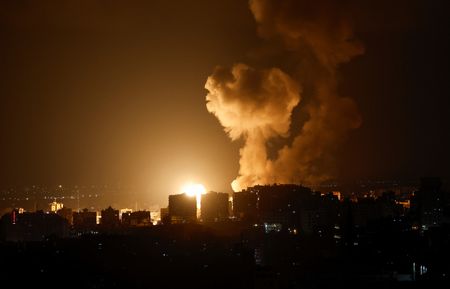 Late on Tuesday, plumes of smoke spiralled into the night sky and explosions could be heard as the Israeli military said it hit targets across Gaza including weapons manufacturing sites and training camps of Hamas, the Islamist group that governs Gaza.