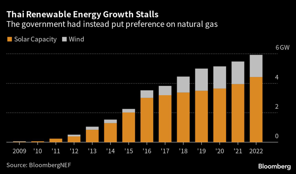 This is a reversal for Thailand, which had stalled new wind and solar in preference for natural gas for years as a transition fuel to eventually adopt cleaner sources.