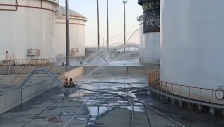 Flames and black smoke billowed over what appeared to be large tanks emblazoned with red warnings of “Flammable” in videos posted on Russian social media, though Reuters could not independently verify either the fire reports or the videos.