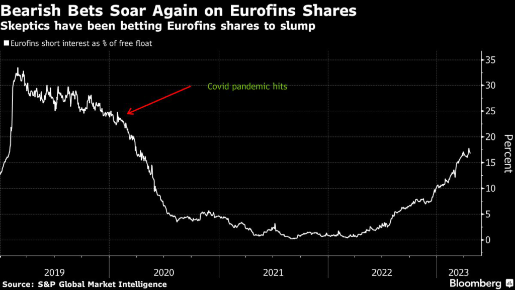 (Bloomberg) — Short sellers piled up bets against lab-testing company Eurofins Scientific SE four years ago, only to get crushed when the pandemic hit and gave the business a €2 billion boost to sales.