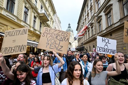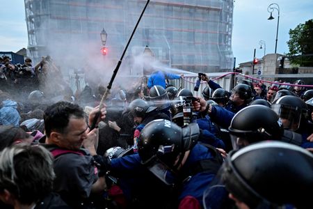 BUDAPEST (Reuters) -Hungarian police fired tear gas at teenagers and detained five people at a rally outside Prime Minister Viktor Orban’s offices on Wednesday after a protest against a new law that would eliminate teachers’ public-servant status.