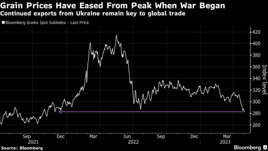 The deal has ensured the safe shipment of nearly 30 million tons of Ukrainian crops since it was signed in July, easing global food prices.
