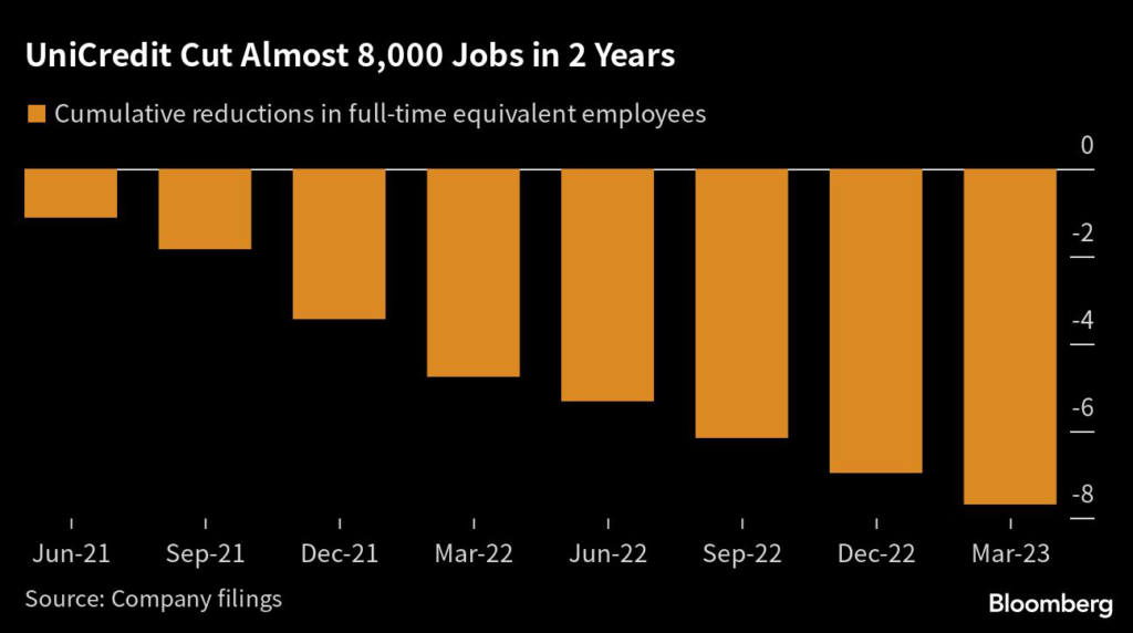 (Bloomberg) — Soon after UniCredit SpA Chief Executive Officer Andrea Orcel took the helm of Italy’s second-largest bank two years ago, it was clear he would begin trimming a workforce he saw as getting in the way of better profitability.
